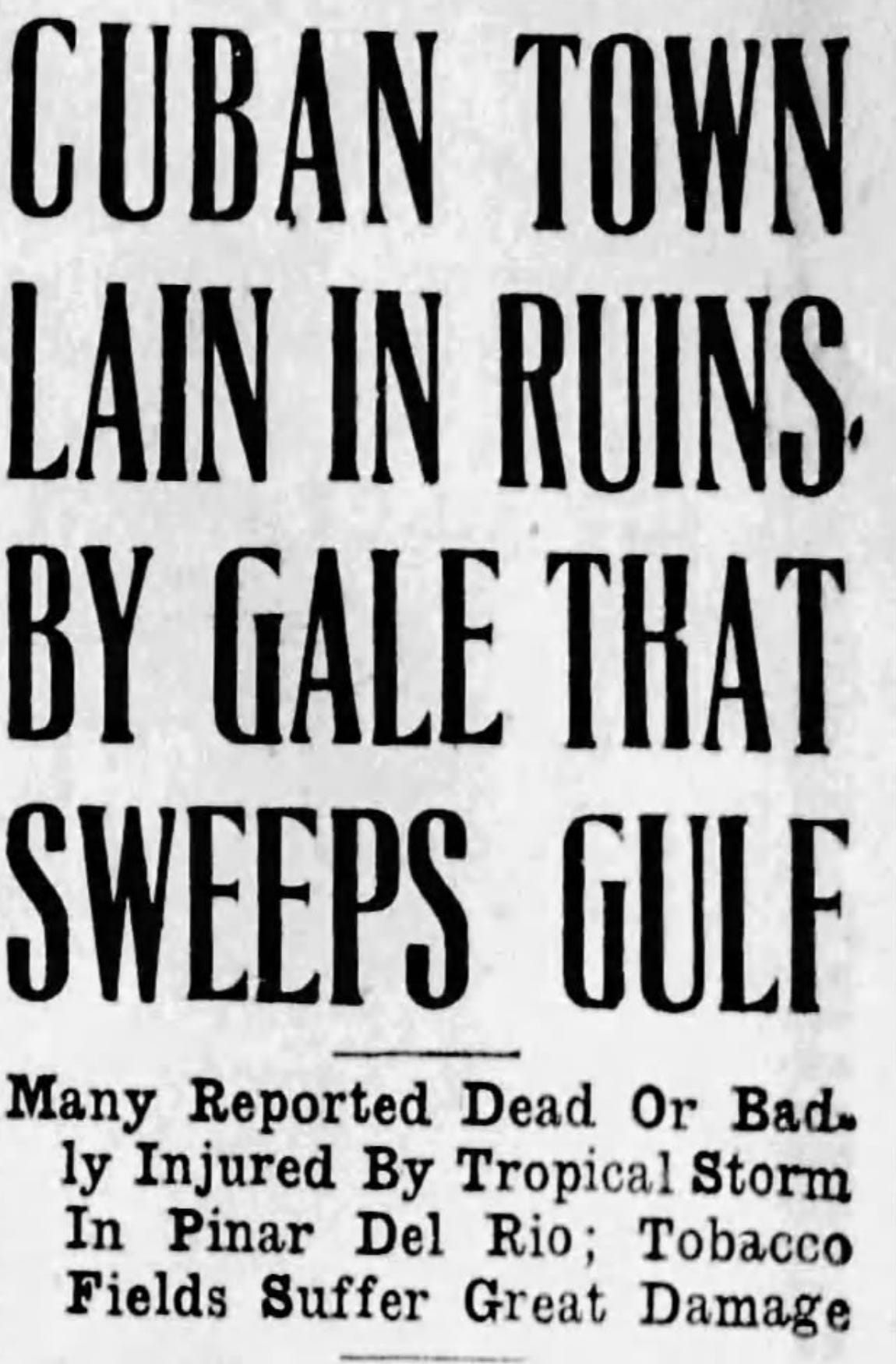 While confusion and indecision plagued Cuba’s national meteorologists, Jamaica was getting a small taste of Fourteen’s incoming madness. While the island never experienced sustained winds over a relatively modest ~70 mph, strong gusts still managed to wreck almost half of the banana crops that were integral to the nation’s economy, toppling over 2 million trees and inflicting $4 million in total damages. Additionally, an American schooner, the Abundance, was beached on the shore of Morant Point. For Fourteen, this was merely child’s play, like sweeping up minnows in a net on the side while simultaneously deep sea-fishing for marlin—but as she rolled by Jamaica, word began to trickle out. As the journalist Rafael Valdés Jiménez recalled: