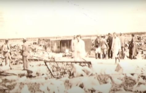 The gruesome cleanup that ensued is almost too appalling to speak of: roving groups of men spread all over the ruins of the town, searching tiresomely for the dead and the buried. They would dig out thousands of decomposing corpses during the next several weeks, stacking their lifeless bodies in great, nauseating piles on the shores of Camagüey, where they would light them ablaze into massive bonfires of flesh and bone. The smoke from the fires (that seemed to be running non-stop for days on end) created an emetic, ghastly blanket of stomach-churning haze over the demolished town, eliciting an atmosphere of such traumatic, mind-scarring nature, it could only be trumped by the horrors of 20th century warfare.