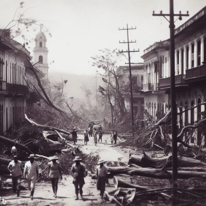 This piece uses both real, historical footage/photos and AI generated images. This was done due to the substantial lack of photographs in and around Santa Cruz del Sur, Cuba in 1932, and in hopes of painting a more vivid picture of what the damage from the 1932 “Cuba” Hurricane would have looked like. All images that are AI generated will be delineated as such. No writing material in this piece has been produced by AI. It is and always will be written by myself, the author.