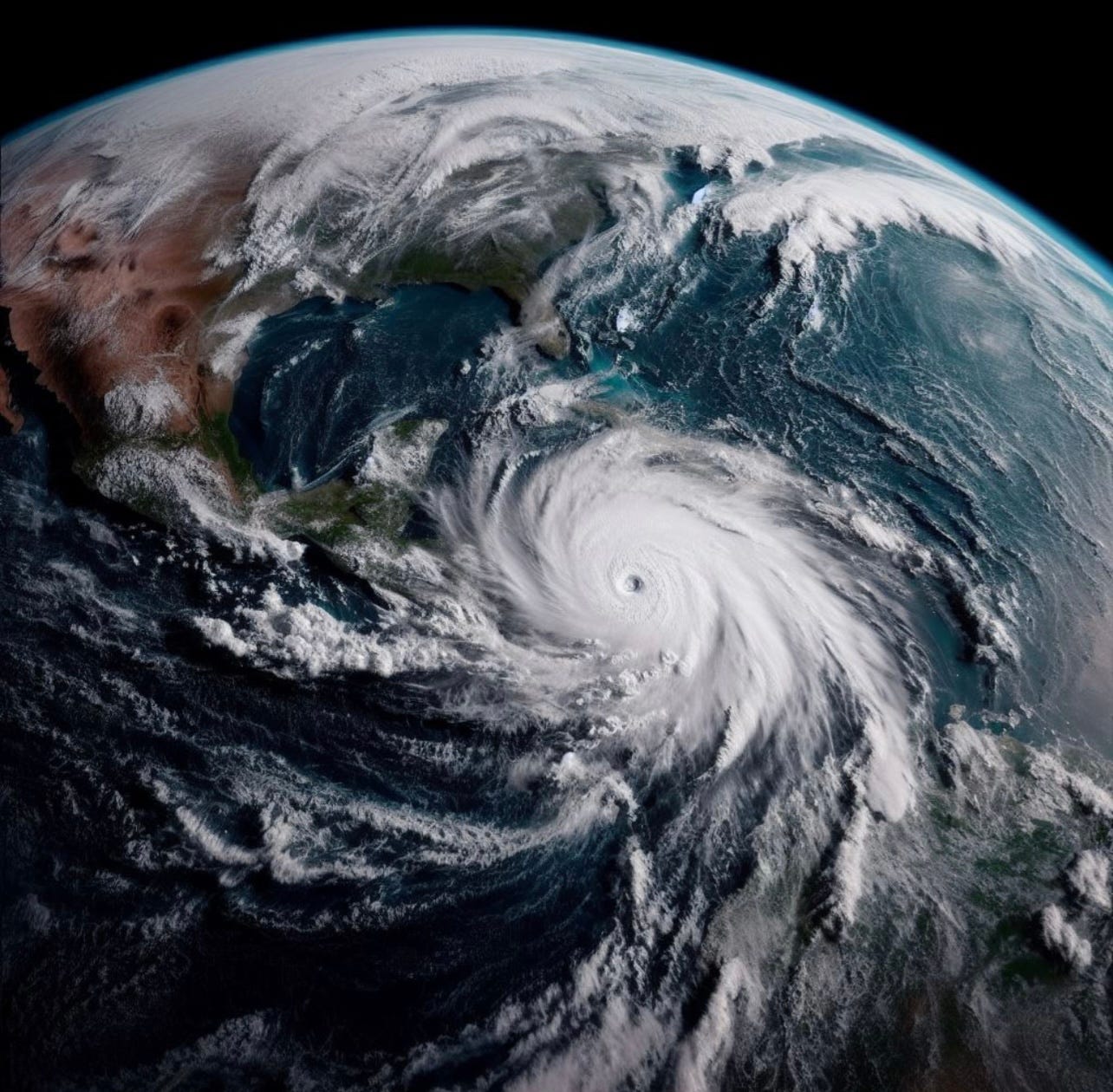 Placing ourselves in the moment, we watch as she exhales the air via the bitterly cold cloud tops of those thunderstorms, now likely reaching temperatures under -100 ℉. She feeds the spent air back to her spiraling outflow patterns wrapped around the finger of her periphery, where it will sink back to the lower troposphere to be recharged and re-consumed. She had encountered her proverbial Battle of the Alamo, but as victoriously seen by Mexico.